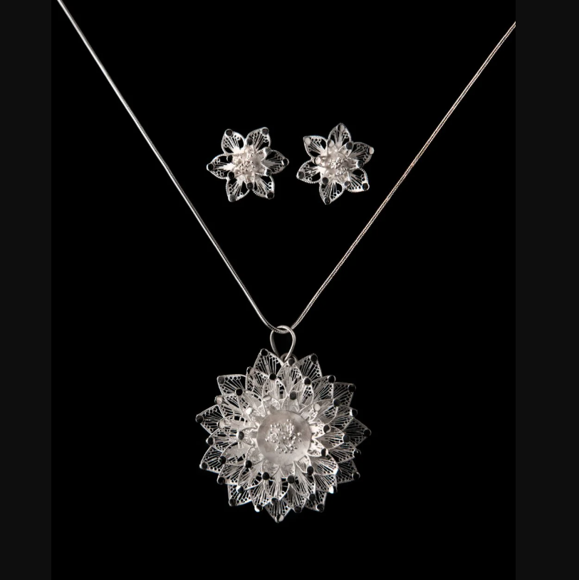 Silver Filigree Pendant and Ear rings : Original Filigree